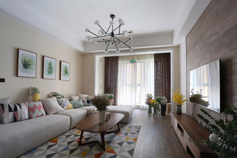 球形的燈組,通過一串的燈具搭配,是很多北歐簡約風格客廳的首選,目前大部分業主的客廳都是裝這種類型的吊燈。